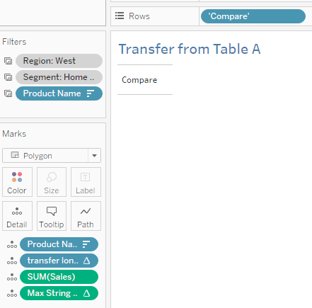 Finally, put “Transfer from Table A” sheet on the dashboard. Hide title. You should be left only with the “Compare” Button.