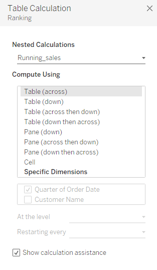 Now we have a true nested table calculation and are able to set both calculation directions.