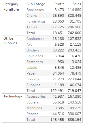 Thank you so much for this! It was extremely helpful in a dashboard I’m making, but I’m running into one challenge. In using your example above, if there is just one sub-category under a category the value for Profit will display in the sub-category row (vs just the Total row) as the resulting value of SIZE() is 1 for both the sub-category row and the Total row. Do you have any suggestions on how to hide the Profit value in the sub-category row in this instance?