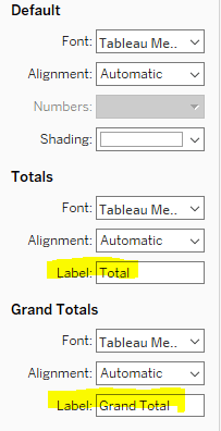 You can rename the “Grand total” by right-clicking the sum or the header and go to “format”. On the left you can then change the label for totals or Grand totals: