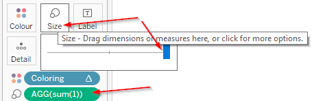 Drop that sum(1) onto size, click the size mark and maximize it: