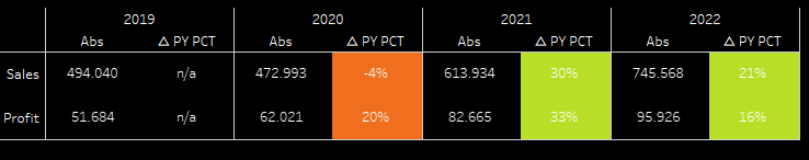 However, there may be cases when you want to show multiple years and their year-over-year development in a table – mostly this is something that senior management wants (why the heck do they love tables that much?) and whilst we are on it, they usually prefer an Excel’eske layout.