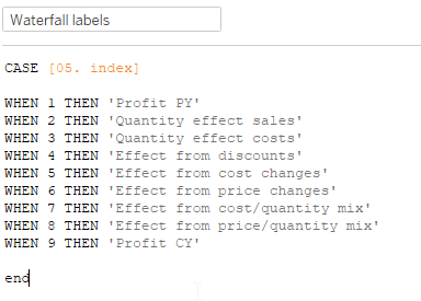 Where 1 and 9 define the total number of our measures we need, in this case our starting year profit, the selected year’s profit and the measures / effects in between.