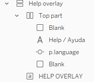 Finally, select the vertical “help overlay” container and add “show/hide button”. Float this one on the very top over the blank on the right, adjust its layout as needed.