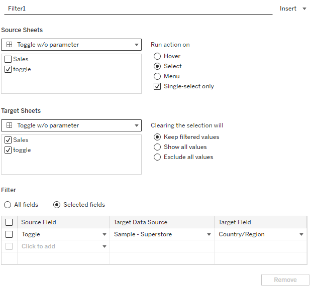 Once you have created this, you need to go into your sales sheet and then right click the filter (it is an action filter) and select