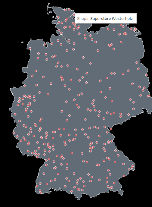 An easy option to at least somewhat beautify this without any further data prepping is to just create a calculated field. Write “Germany” in it. Select it on the data pane, set the Geographic role to “Country”.