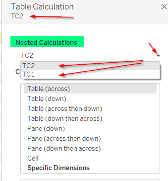 - Nesting table calculations