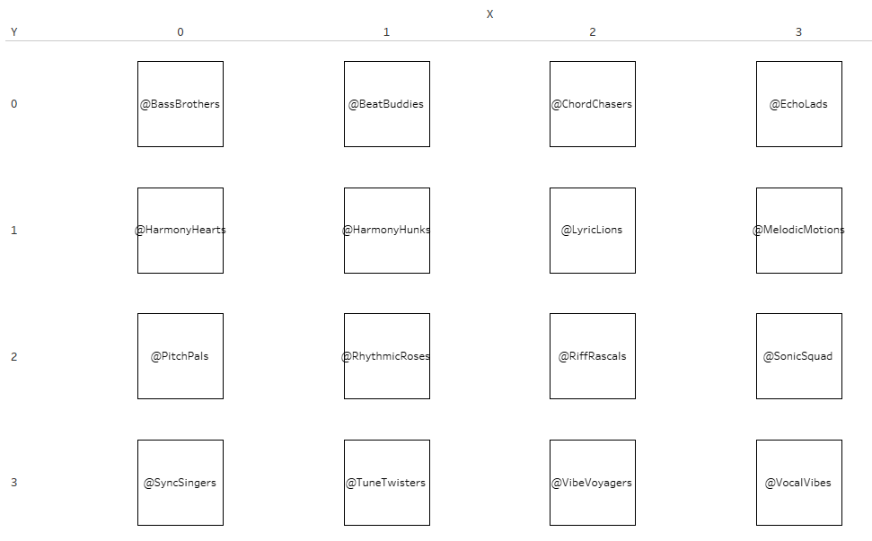 Now let us go on and apply this newly acquired knowledge to the WOW2024-W15 challenge where Andy Kriebel asked us to create a dynamic trellis chart using mock data for fake boybands and their social media interactions.