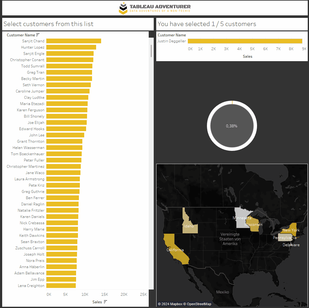 Finally, build a third (or fourth, fifth…) sheet that you also make dependent on the selected customers and built it out however you want.
