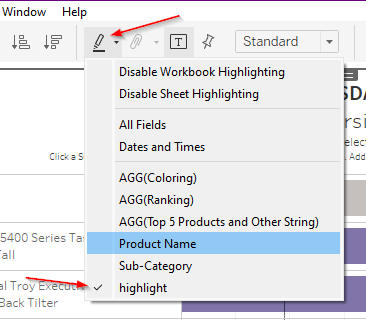 Finally, create a calculated field named “highlight” and just add ‘highlight’ in it. Add it to the details.